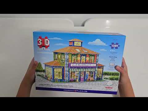 Met deze 3D puzzel van 1389 stukjes bouw je stap voor stap een gedetailleerde boekwinkel in miniatuur. De puzzel bestaat uit stevige stukken die samen een realistisch model vormen, compleet met etalages, boekenplanken en decoratieve elementen. De gevel is uitgevoerd met bakstenen muren die begroeid zijn met klimop, een pannendak en bloembakken.